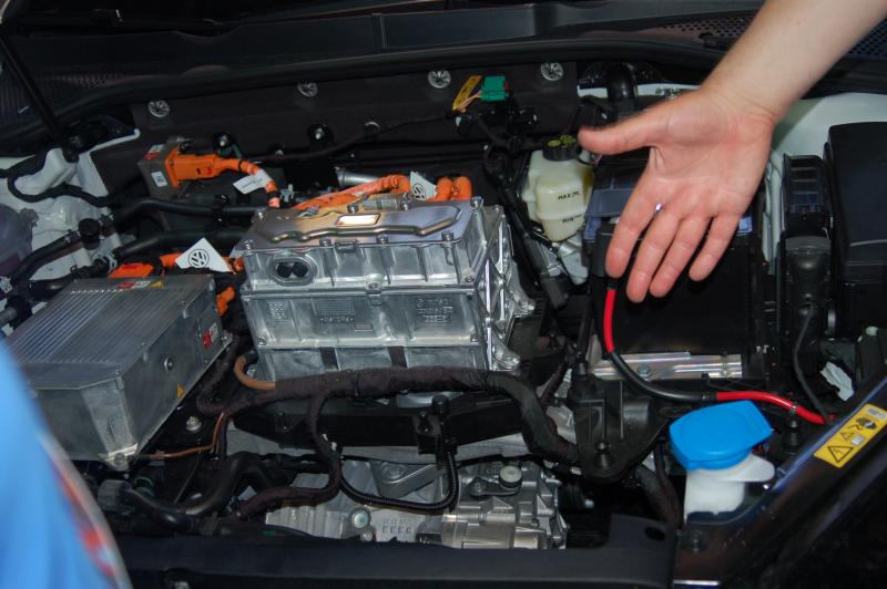 A motorháztető felnyitása után előtűnik a teljesítmény elektronika, alatta pedig a hajtó motor