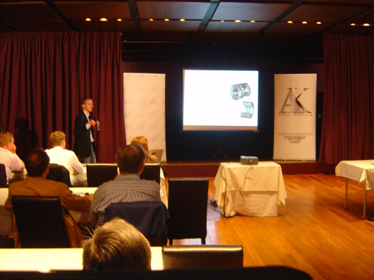 Elsőként a kerékcsapágyak múltjába, jelenébe és jövőjébe avatta be a résztvevőket Horváth Péter, az SKF Zrt. autóipari alkatrészekért felelős vezető.