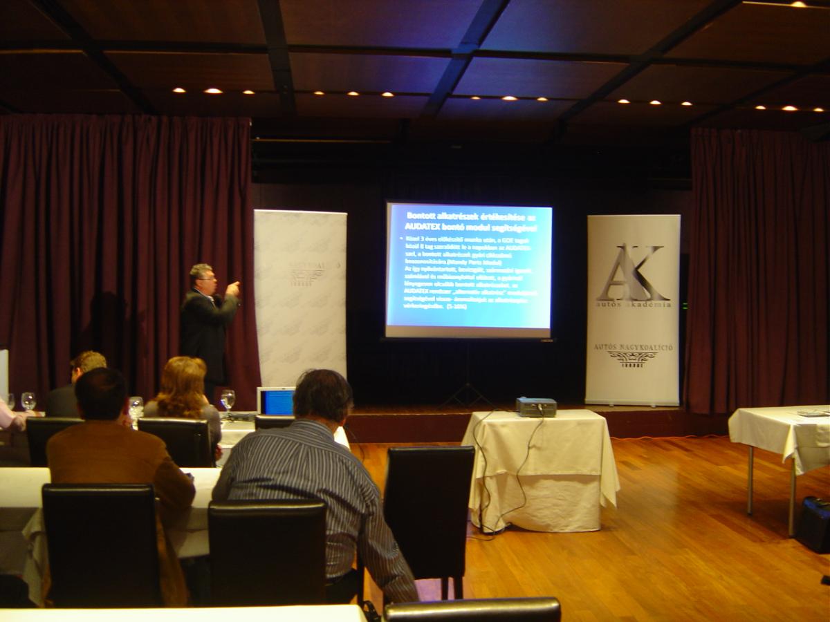 Negyedikként Kovács Gyula, a Gépjárműbontók Országos Egyesülete elnöke „ A magyarországi gépjárműbontók múltja, jelene és jövője a 2015.01.01-től érvénybe lépő 95%-os újrahasznosítási előírás tükrében címmel tartott előadást.
