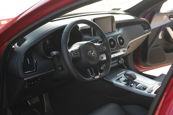 És mivel a külső „csak” megfog, a belső az, ami megtart, az ajtókat feltárva olyan enterőr tárul elénk, ami nem töri meg a külcsín által kiváltott impressziót. Annak ellenére, hogy nincs tűzijáték, azaz szintből kiemelkedő magas hangsugárzó vagy mozgó szellőzőrostély a műszerfalon, stílusában és minőségében is hozza a tőle elvártakat a Stinger beltere. A funkcionalitás és ergonómia uralta cockpit könnyen átlátható, a kezelőszervek kézre esnek, működtetésükhöz nem kell a kezelési utasítást bogarászni.