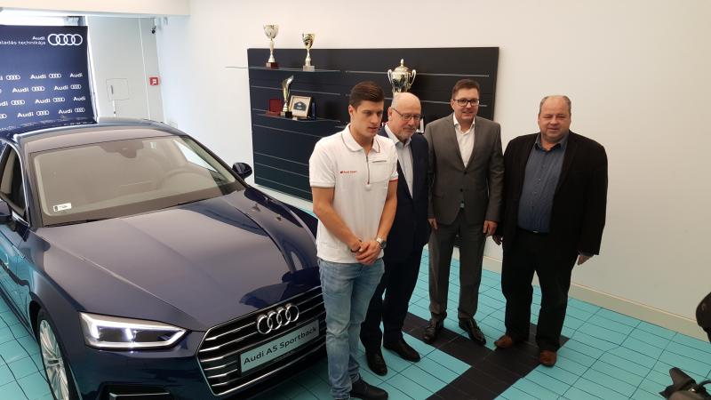 Olimpiai bajnok úszónk az elsők között élvezheti az együttműködés részeként a most piacra lépő új A5 Sportback modellt. Dr. Vérten Sándor a Porsche Hungária Kft. kommunikációs igazgatója a ceremónia ünnepélyes hangulatára ráfűzve bejelentette, hogy a most megkötött együttműködésen túlmenően a cég a magyarországi vizes világbajnokság hivatalos autószállítója is lesz, ami a legékesebb fémjele a vállalat úszósport utáni elkötelezettségének.