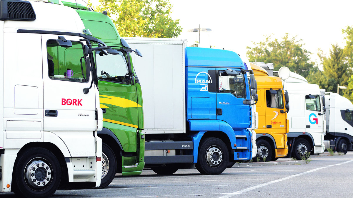 Kamionok várakoznak a parkolóban. Az ekáer a törvénytisztelő cégeket segíti