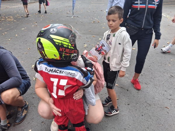 Egy másik, ugyancsak a kisebbeknek szóló programon motorozni is lehetett, a Talmácsi Ring települt ki és épített könnyű pályát Szegeden a kétkerekűeknek. Itt is nagy volt az érdeklődés, a bátran induló, ám gyorsan elbizonytalanodó apróságokat féltve figyelték az anyukák és apukák, aggodalomra azonban nem volt semmi ok, a biztonságból itt sem engedtek.