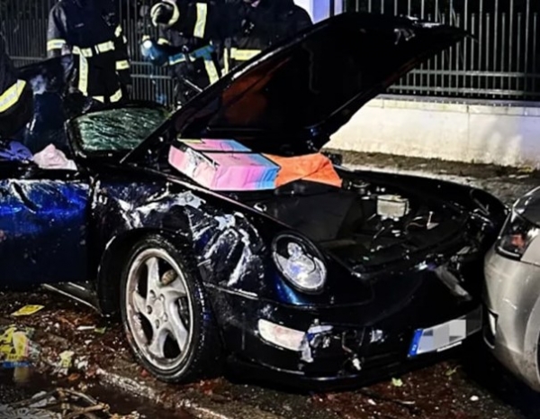 Sezgin Y. (48) hajnali 2 óra 13 perc körül luxus sportautójával áttört több betoncsapot, és közben parkoló autóknak ütközött. A Porsche felborult, és végül a kert falának csapódott.