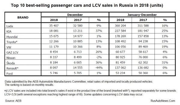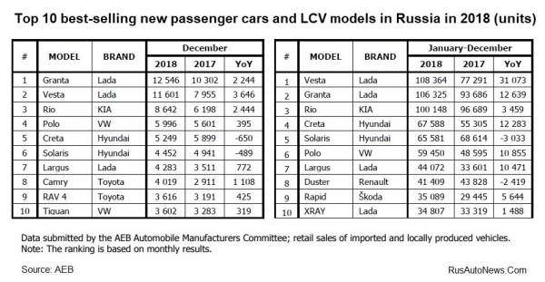 Tavaly decemberben az új autók és könnyű haszongépjárművek értékesítése 5,6% -kal nőtt 2017 azonos időszakához képest. A 2018 decemberében összesen eladott 175.240 gépjármű 9.227-tel több, mint egy évvel korábban – írja a rusautonews.com orosz autós szakportál.