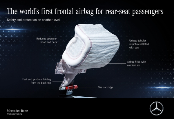 A biztonságról szólva még fontos megemlíteni, hogy 20 vezetéstámogató rendszer és 10 légzsák jár alapáron, de felárért lehet még 8 hátsó légzsákot is kérni, köztük oldal- és övlégzsákokat is, utóbbiak az övnek a testre gyakorolt nyomását osztják el nagyobb felületen. Elöl a középső légzsák világújdonság, a feladata az, hogy oldalütközés esetén a két első utas feje ne tudjon összekoccanni. Szintén világújdonságnak számítanak a csöves struktúrájú, 70 literes hátsó frontlégzsákok, amelyek az első ülések háttámlájából robbannak ki baleset esetén.