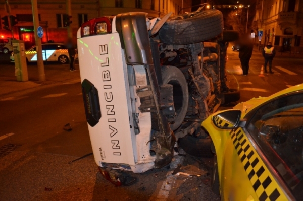 A menekülő az I. kerületi Attila út és Alagút utca kereszteződésében áthajtott egy piros lámpán, nekiütközött egy másik autónak, majd felborult, miközben nekicsúszott egy taxinak is.