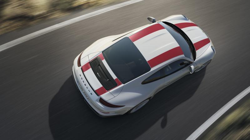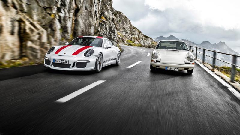 Elődjének szellemiségét viszi tovább az új 911 R is. Könnyűszerkezetes építésmóddal és nagy teljesítménnyel a vezetés színtiszta örömére fókuszál. A számok nyelvére lefordítva ez 500 lóerőt jelent, miközben az autó tömege mindössze 1370 kilogramm! Alapját a 911 GT3 szolgáltatja, ám annak jellegzetesen nagy hátsó légterelője nem hivalkodik az R változaton. Így első pillantásra nem is gondolnánk, mekkora erő lakozik a már említett csúcsmodelleknél ötven kilogrammal könnyebb autóban. A 323 kilométer/óra végsebesség felé gyorsítva azért felnyílik hátul egy légterelő, hogy biztosítsa a nagyobb tempónál szükséges leszorítóerőt. A négyliteres boxermotor 460 newtonméter nyomatékát hatfokozatú manuális sebességváltó továbbítja a kerekek felé. Ezzel is jelzi, egy olyan vásárlói réteget céloz, akik a GT3 modellek automatizált sebességváltói helyett másfajta, közvetlenebb élményre vágynak. Hiszen amennyiben a vezető ügyesen kezeli a váltókart, a gyorsulás sem marad el számottevően: akár 3,8 másodperc alatt elérhető a 100 km/h sebesség, míg a GT3 RS csak egy fél másodperccel gyorsabb. További élményfokozó a sebességváltó gombnyomásra aktiválható funkciója, amely a visszaváltásoknál gázfröccsel szinkronizálja a fordulatszámot.
