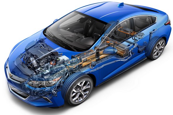 A Voltec névre hallgató hajtáslánc egy 16 helyett már 18,4 kilowattórás, 284 helyett csak 192 cellából álló lítium-ion akkumulátorcsomagból, egy 152 lóerős villanymotorból és egy 101 lóerős, 1,5 literes hatótáv-növelő benzinmotorból áll. A villanymotor nem, csak a benzines lett erősebb, utóbbi átlagfogyasztása kombinált üzemmódban 5,73 liter az amerikai mérési módszer szerint. A General Motors szerint 5-ből 4 utazás alatt csak a villanymotor fog működni az autóban, a tulajdonosok várhatóan csak 1600 kilométerenként fognak benzinkúthoz menni.
