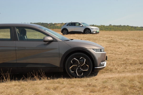 Megjártunk 45 százalékos emelkedőket, ráadásul nem éppen tapadós felületen, de az Ioniq5 nem kapart feleslegesen, és könnyedén mászta meg a nem éppen szilárd alapú és meredek szántóföldeket, árkokat.