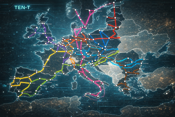 A TEN-T közúthálózat egész Európát behálózza (Forrás: AI generált illusztráció)