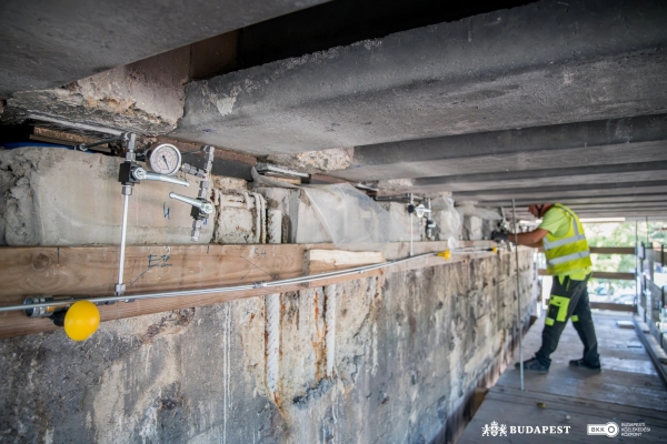 A BKK jelezte: a Flórián térnél a híd- és támfal meglévő szegélyeinek bontása már tavasszal megtörtént, elkészültek az új szegélyek, továbbá a pályalemez konzolos részének javítása is teljes hosszban elkészült.