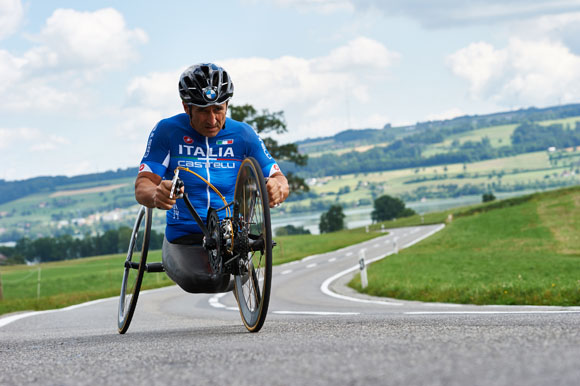 Az olasz fenomén ezúttal azonban nem a két paralimpiai aranyérmet és nyolc világbajnoki címet biztosító kézihajtású kerékpárjával áll rajthoz, hanem egy olyan sportszerrel, amelyet ezelőtt még soha nem próbált: Németország fővárosának utcáin egy kézihajtású fekvőkerékpárral versenyez majd.