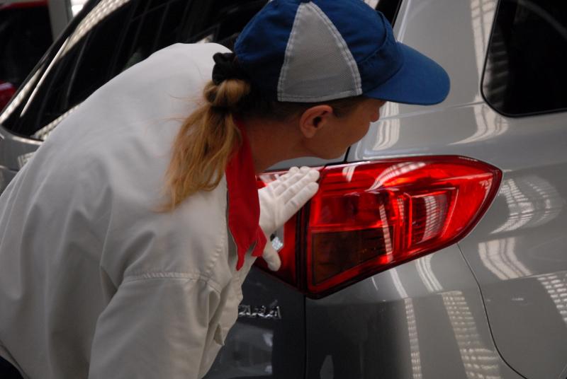 A legnagyobb magyar parkolóban nem sokáig állnak az autók, mert hamarosan kamionra vagy vasúti kocsira pakolva utaznak, olykor több ezer kilométert, jelentős részük hajózik is. Persze így sem üres soha a 7500 férőhely, csak cserélődnek a placcon az autók, méghozzá egyre gyorsabb tempóban. Napjainkban már percenként gördül le a gyártósorról egy-egy új Suzuki. Egymást váltogatják a a Swift, Vitara és immár a legújabb SX4 S-Cross modellek a tusolóban, ahol a 168 szerelési pont után átesnek az utolsó ellenőrzéseken. A felületek simogatós és vizuális átvizsgálása után már csak a szigetelést tesztelő zuhanyeső következik, aztán irány a rakodótér, ahol próbakör után ügyesen manőverező sofőrök parkolják le a különböző színű autókat.