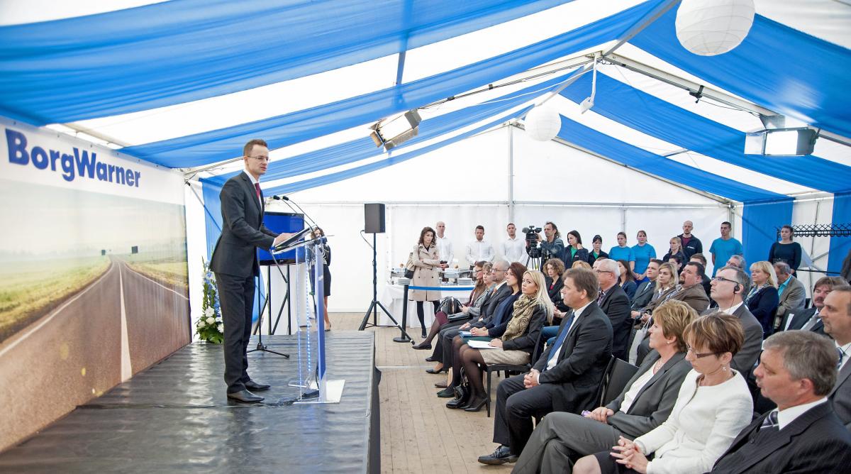 Beszédében a külgazdasági és külügyminiszter elmondta, hogy az új gyár felépítése és a már Oroszlányban lévő turbófelöltő gyár bővítése összesen 9 milliárd forintos beruházás, melyhez a társaság egyedi kormánydöntés alapján 850 millió forintos támogatást kapott. A BorgWarner a két üzemben összesen 400 új munkahely létesítését vállalta - tette hozzá.