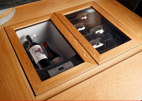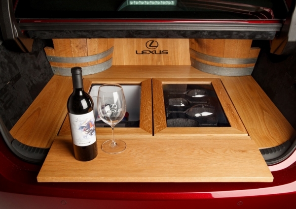 Ez azonban csak a kezdet. A csomagtartó padlója, az ülések hátoldala nemes tölgyfa borítást kapott, a kerékdobokat hordószelvények takarják el. Nem véletlenül: a pótkerék üregében borhűtőt, valamint míves kristálypoharak tárolására szolgáló szekrénykét alakítottak ki, a csomagtér oldalfalában további egy palack bornak jut biztonságos hely, a küszöbre pedig tálalópult illeszthető – szintén tölgyfából. A márka hosszú évek óta ápol kapcsolatot a luxuspoharakat gyártó Riedel manufaktúrával, az ES-t is ez az 1956-ban alapított, osztrák cég szerelte fel. A hűtőben elhelyezett borok is különlegesek: a legendás autóversenyző Scott Pruett által 2006-ban alapított, többszörösen díjnyertes borászat termékei közül is kiemelkedik az a 2015-ös Cabernet Sauvignon, amelyből mindössze ötven darabot palackoztak Pruett több évtizedes pályafutásának utolsó versenyautója: az RC F GT3 tiszteletére.