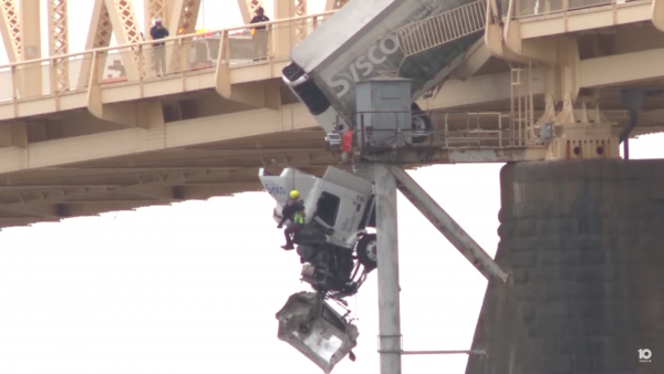 A felvételen jól látható és hallható, mi-hogyan történt, láthatók a baleset és a zuhanás pillanatai. Hallható a félpótkocsis teherautót vezető 26 éves nő, Sydney Thomas rémült sikítozása, amikor elveszíti az uralmát a teherautó felett, és a jármű - áttörve a híd korlátját - a mélybe kezd zuhanni, majd megáll a levegőben, beakadva a hídpillérbe.