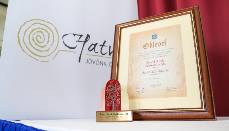 A program jelölő bizottságának javaslata alapján Hatvan Város Önkormányzat Képviselő-testülete „Az év vállalkozása” díjat 2015. évben a hatvani Robert Bosch Elektronika Kft. részére adományozta. Az elismerést Volker Schilling, a hatvani Bosch gyár gazdasági ügyvezető igazgatója és Roger Seemeyer műszaki ügyvezető igazgató vették át.