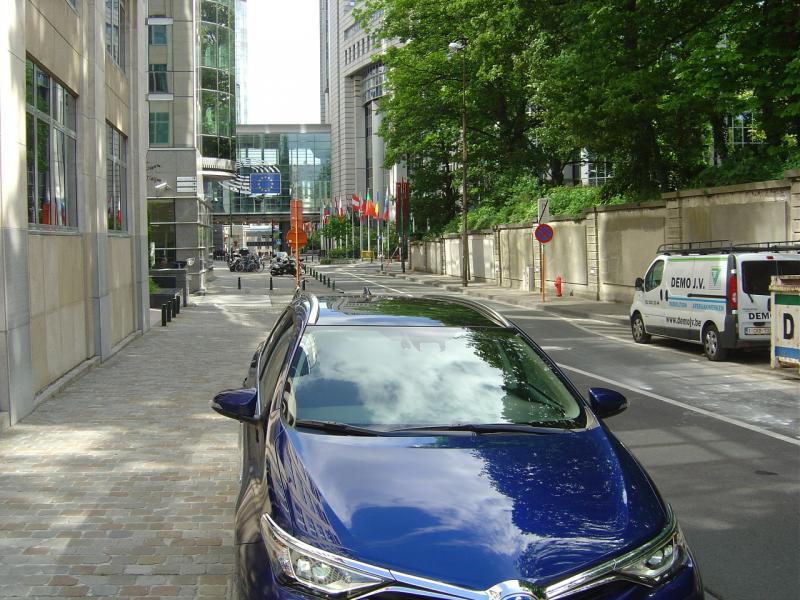 Az új Auris a brüsszeli EU-központ előtt.