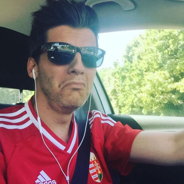 Rajong a fociért, és szeret a volán mögött ülni, bár ott már régóta nem versenytempóban közlekedik (forrás: Buda Márton facebook oldala)