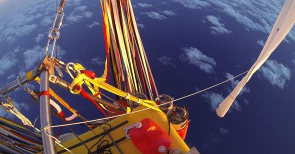 Az extrémsportoló-páros az eredeti tervek szerint Kanada délnyugati részén landolt volna, de a szélviszonyok miatt kénytelen volt élesen irányt váltani, ezért szálltak le Mexikóban, a Kaliforniai-félszigetnél. A két férfi egy szűk, mindössze 10 Celsius-fok hőmérsékletű, de a legkorszerűbb műszerekkel felszerelt kabinban, körülbelül 4500 méteres magasságban tette meg az utat.