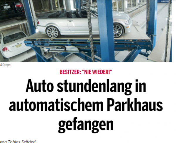Most azonban egy bázeli sofőrnek rá kellett jönnie, mit jelent, ha egy automata parkolóházban meghibásodik a technológia. Amikor a 65 éves férfi fel akarta venni Skoda Superbjét a St. Claraspital (kórház) automata parkolójából, hosszú türelempróbára kényszerült. Parkolójegyének leolvasásakor a gép műszaki meghibásodást jelzett, emiatt az autóját tartalmazó dobozt nem találták. Általában az autónak körülbelül egy perc múlva kell megjelennie normál esetben. Az érintett személy több mint két órát várt, mielőtt megkapta a Superbjét.