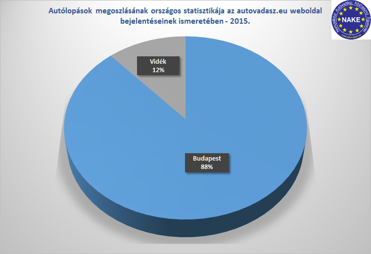 Természetesen továbbra is Budapestről érkezik az autólopási bejelentések majdnem 90 százaléka, mint az eddig is megszokott volt. Szintén megszokott a trend akkor, ha a budapesti kerületek eloszlását nézzük, a bejelentett autólopások arányait tekintve. Mivel minden évben megjegyzéseket kapunk az éllovas XI. kerület miatt ki kell emelnünk, hogy ez a kerület arányait tekintve az egyik legnagyobb budapesti kerület.