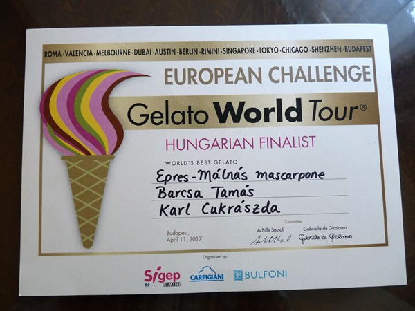 Beszélgetésünk május 5-i időpontja alig három órával azt követően volt betervezve, hogy a sokak által ismert Erzsébet utca 1. szám alatti cukrászdától nem messze, a város központjában, a Baktay téren is fagylaltozó-kávézó üzletet nyitott Karl Zsolt, a Ráckevei-Duna bal partján fekvő kisváros legkedveltebb és legismertebb cukrászmestere. Interjúnk egyik apropója tehát az említett innováció, ugyanis a cégtulajdonos elmondása szerint 48 évig nem történt Dunaharaszti belvárosi részén hasonló magánberuházás. Éppen ezért a 120 négyzetméteres, galériás vendéglátóhely helyett csak egy faházas, egyszerű fagyipultos tervei voltak eredetileg a tulajdonosnak. Találkozásunk másik apropója pedig a legjobb fagylalt kézművesek között megrendezett Gelato World Tour European Challenge elnevezésű nemzetközi versenysorozat hazai fordulóján elért harmadik helyezés volt. Zsolt egy epres-málnás mascarponés fagylaltot kreált a 24 indulóból álló megmérettetésre, és csupán 6 ponttal maradt le a második helyezettől.