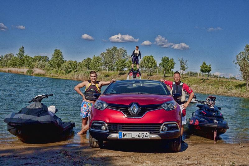 Minden adott a sikerhez, a Renault még sem bízott semmit a véletlenre. Egy fiatal és sármos, nemzetközi szinten is jegyzett magyar jet-ski versenyző, Gacsal Balázs lett a divatmárka és az autótipus frigyének arca. Az igazat megvallva, Balázsnak jól is áll ez a sármos, automata váltós, 1,2-es motorral szerelt kisautó, amely egyébként ahhoz pont elég nagy, hogy egy elegánsabb kivitelű vonóhorog segítségével, jet-skit vagy bármely más kisebb kiterjedésű vízi sporteszközt eljuttasson rendeltetési helyére. Balázs, aki korábban, nagy és erős autókkal, úgy nevezett luxusmárkák modelljeivel közlekedett, azt mondja, ennél stílusosabb belsőt, elegánsabb külsőt rég nem látott autóban. Ráadásul ma már a jet-ski tavakon sem divat a brutális nagy autó, a vastag fux, a nagyteljesítményű sport motor és az agresszív tekintet. Balázs egyébként jet-skiben is csak versenyzéshez használ brutális nagy vasat.