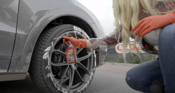 A gumiabroncsok és felnik megfelelő tisztítása magában foglalja a fékek által vezetés közben keletkező szennyeződések eltávolítását. Ez az a por, amely a perem belsejébe tapad és a csavarokról nehéz eltávolítani. Ecsettel a legegyszerűbb felvinni a tisztítóoldatot a nehezen hozzáférhető területekre, a vastartalmú szennyeződése keltávolításához. A permetet hagyja hatni néhány percig, majd öblítse le tiszta vízzel.