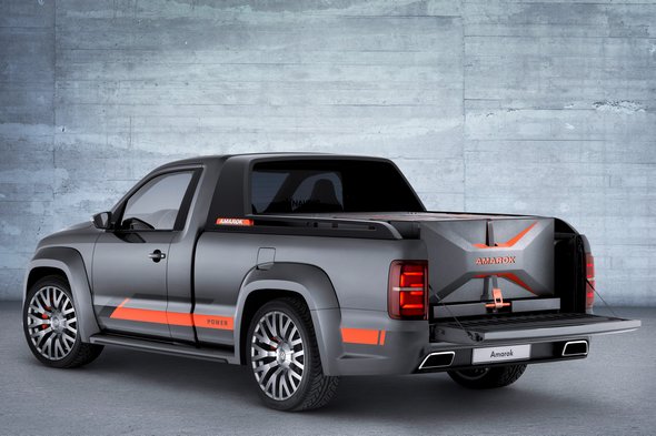 A 22 colos könnyűfém keréktárcsák (gumiméret 295/35) és a visszapillantó tükrök burkolatának felső része ezüst színű, úgynevezett "Gunmetal" fényezést kaptak, míg a narancssárga matricák az ajtókon és a küszöbökön a szintén narancssárga féknyergekkel harmonizálnak. Az Amarok 'Power' látványosságát fokozzák még a bi-xenon fényszórók a krómbetétekkel és a szintén krómvégű kipufogócsövek mindkét oldalon. Belül a kormánykereket fekete Alcantara borítja, a kagylóülések fekete/narancs (Orange Power) finom nappa bőr borítást, az ajtók, az ülések háttámlái, valamint a műszerfal szénszálas dekor betéteket kaptak. Még az olyan apró részletek is kidolgozottak, mint a hűtőrács méhsejt mintázatára emlékeztető perforációja az üléseken és a fejtámlába lézerrel gravírozott Amarok sziluett.