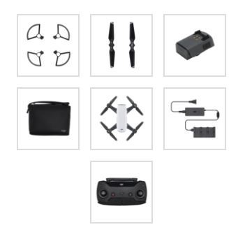 A DJI Spark 5 különböző színben (fehér, piros, zöld, kék és sárga) és két felszereltségi csomagban vásárolható meg. Az alapcsomag a gépet és az akkutöltőt tartalmazza, távirányítón nélkül. Ezt a gépet a telefonunkról, a wifi kapcsolaton keresztül irányíthatjuk. A wifi le is korlátozza az irányítás hatótávolságát kb. 100 méterre.