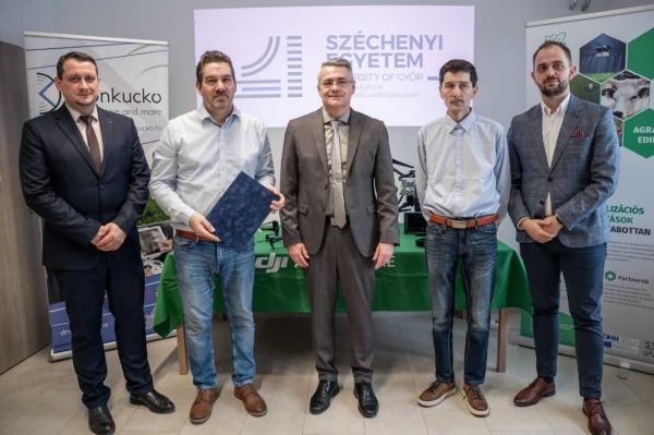 A megállapodást a Széchenyi-egyetem részéről dr. Tóth Tamás és dr. Kulmány István Mihály, míg a Drónkuckó részéről Földes Krisztián cégtulajdonos látták el kézjegyükkel. Az együttműködés keretében megvalósuló projekteket az érdeklődők a későbbiekben az Agrár- és Élelmiszeripari Kutatóközpont Facebook- és LinkedIn-platformjain követhetik nyomon.
