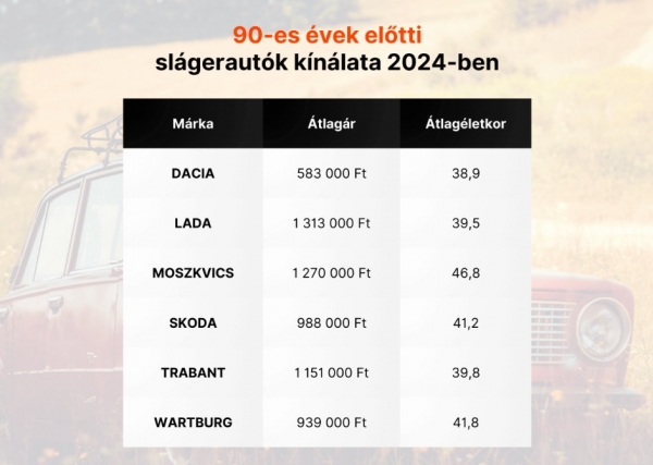 „Úgy tűnik, érdemes öreg KGST autóba fektetni, hiszen egyre jobban emelkedik az áruk. Korukhoz képest majdhogynem elképesztő összegeket kérnek több mint 40 éves modellekért is” – mondta Horváth András, a Használtautó.hu autópiaci szakértője. Az oldal legfrissebb adatai szerint ezek a klasszikus, sok esetben gyűjtői járművek átlagosan több mint 39 évesek, ám a gyönyörűen restaurált példányok ára egyre inkább felveszi a versenyt a modernebb használt autók árával. A január és szeptember között regisztrált kínálatban az 1990 előtti évjáratú autók átlagára a piacon különösen magasra emelkedett, főleg a Trabant, Lada és Moszkvics modellek esetében.