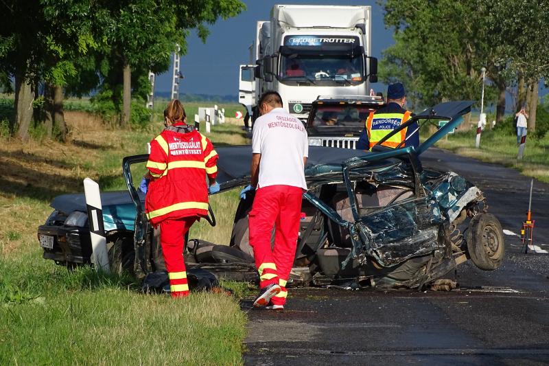 A magyar honosságú autó Makó irányába tartott. Egy gépkocsit próbált megelőzni, de a manővert nem tudta befejezni és összeütközött a vele szemben szabályosan haladó román honosságú autóval. Előbbi járműben hatan utaztak, az autót vezető 42 éves férfi a helyszínen meghalt, az utasok mindannyian megsérültek. A román gépkocsiban utazó két személy szintén megsérült.