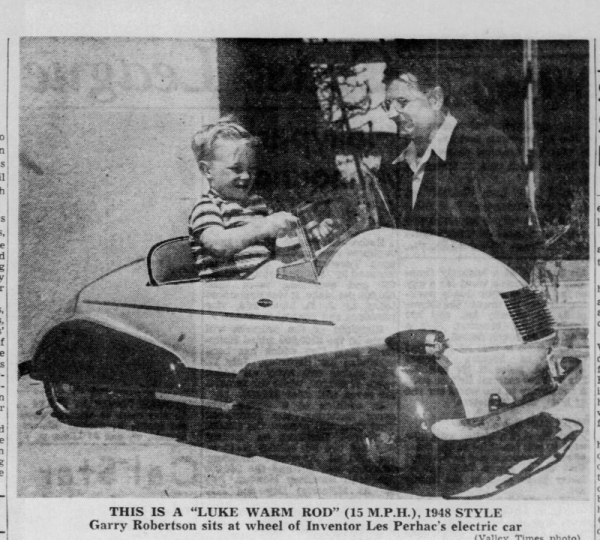 Perhacs azonban többre vágyott. Feltehetően kisfia, az 1940-ben született Leslie Jr is inspirálta. 1948-ra elkészült a 24 km/h végsebességre képes, egyszemélyes Kiddie Kar (Gyerekautó) első példánya. „A kanárisárga és vörös alkotás az összes 3 és 103 év közötti gyereket odavonzotta többmérföldes távolságból” írta egy lelkes riporter, aki külön kiemelte, hogy mennyire örült mindenki az autócska hangos kürtjének. „Perhacs 22000 dollárt [mai értéken kb 270,000 dollár] költött a prototípusra” állt az újságcikkben, amely valószínűleg enyhe túlzás.