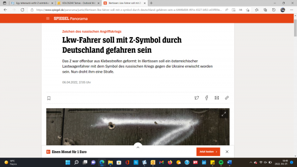 A Spiegel cikke. Képernyőfotó.
