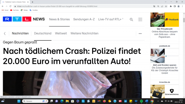 A férfi meghalt. A rendőrök egy halom készpénzt találtak az autóban. Az rtl.de úgy tudja, 20 ezer euró volt egy táskában. A baleset okát most szakértő vizsgálja.