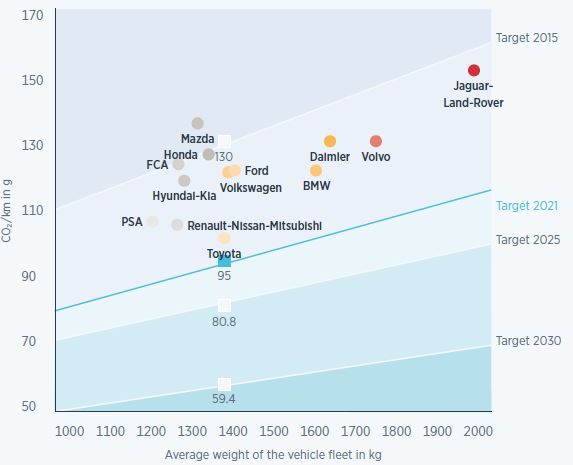 Ennek meghaladása esetén ugyanis az autógyáróknak extra grammonként és autónként 95 eurós bírságot kell megfizetniük, ez pedig a legtöbbjük számára gigabírságokat jelent majd, ami drasztikus hatással lehet a profitabilitásukra, hacsak nem építik be a büntetés összegét az új autók árába, és/vagy nem szűntetnek fel számos modellt és hajtásláncot a kínálatukban. Az egyetlen autógyártó (az Európában egyelőre marginális értékesítéseket jegyző Teslát leszámítva) amely elkerülheti a büntetéseket a Lexus prémiummárkát is jegyző, az elmúlt 22 évben világszerte több mint 15 millió környezetbarát hibrid elektromos autót értékesítő Toyota, amelynek európai értékesítéseiben már most 63%-ot tesznek ki a hibridek.
