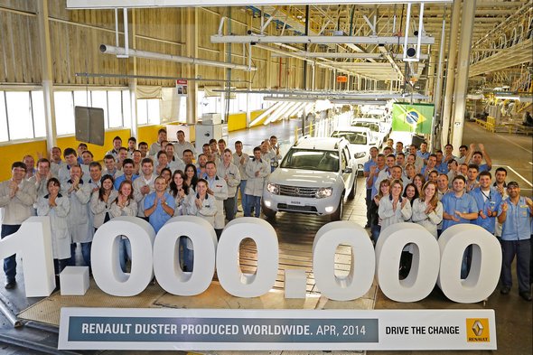 Az egymilliomodik Duster a curitibai gyárban, Brazíliában készült el egy helyi vásárló számára. A Dustert jelenleg öt gyárban készítik a világon: Pitestiben (Románia), Curitibában (Brazília), Envigadóban (Kolumbia), Moszkvában (Oroszország) and Chennaiban (India).