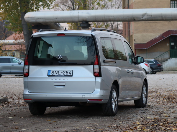Hátul a óriási felfelé nyíró csomagtér ajtó üvegének alsó vonala a felső övvonalat folytatja, a CADDY felirat egy külön lemezsávba került, és a hátsó vészhárítóból csak erősen szedett szemöldök maradt, épphogy elférnek benne az ultrahangos parkolássegítő rendszer szenzorai.