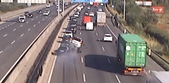 Tipikus eset: lelassult a forgalom ritmusa a belső sávban (amely a jobbra tartási kötelezettség ellenére jóval zsúfoltabb volt, mint a két másik), a sor végén érkező autó vezetője későn észlelte, hogy fékeznie kell, és belecsúszott a sorban leghátul állóba (amely egy terepjáró volt, és éppen hogy meg tudott állni korábban).