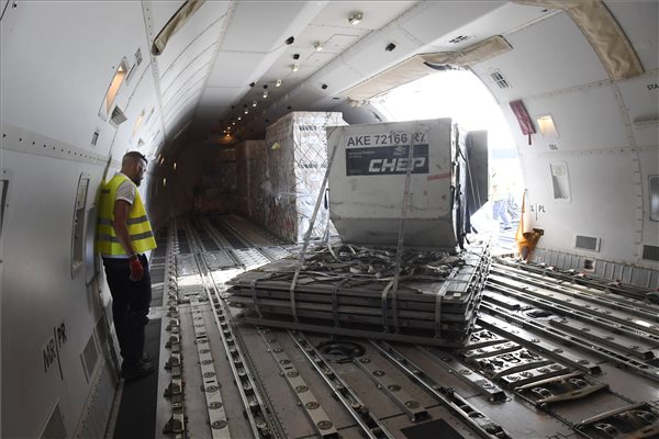 Rakodják az orosz Air Bridge Cargo teherszállító légitársaság Boeing 747-8F típusú repülőgépét a Liszt Ferenc-repülőtéren 2018. június 26-án. MTI Fotó: Kovács Tamás