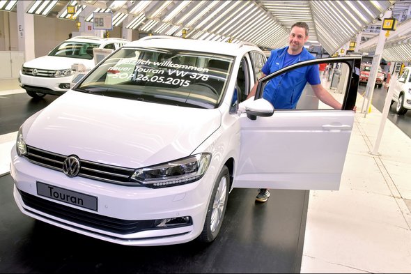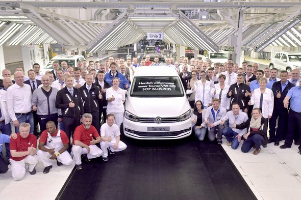 Május 26-án legyártották az első példányt az Touranból a Volkswagen wolfsburgi gyárában, egy fehér autót 1,4 literes TSI motorral. Elődjéhez képest az új Touran hossza 130, a tengelytávja 113 mm-rel lett nagyobb, előbbi így most több mint 4,5 méter, utóbbi pedig megközelíti a 2,8 métert. A méretnövekedés ellenére a kocsi tömegéből 62 kilogrammot faragtak le, és a karosszéria merevségén is javítottak a nagyszilárdságú acélok nagyobb arányú felhasználásával.