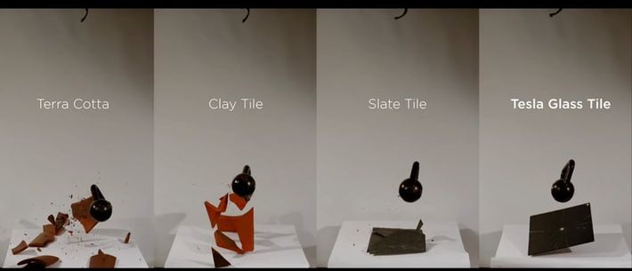 Az alapító a nappanelek strapabírását is demonstrálta. A tetőre magasról ejtettek rá egy súlyt. A cserép ugyan megreped, de nem törik darabokra. Az árrról Musk még nem nyilatkozott, és a cserepek áramfejlesztő képességéről és szigeteléséről sem tudunk pontosat.