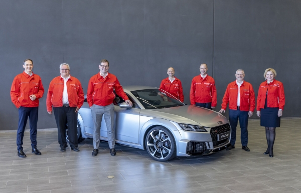 Fotó: Linkedin/Alfons Dintner A fotón balról jobbra: Alfons Dintner az Audi Hungaria igazgatóságának elnöke, Robert Buttenhauser, a győri Audi motorgyártásért felelős igazgatósági tagja, Markus Duesmann, az Audi AG vezérigazgatója és Gerd Walker az Audi AG termelésért és logisztikáért felelős igazgatósági tagja.
