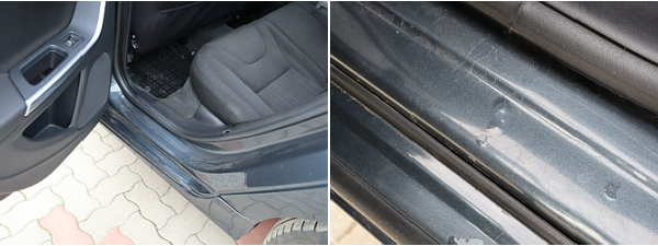 A tulajdonos nem tudta nézni a bal első ajtón és sárvédőn éktelenkedő sérüléseket ezért azokat megcsináltatta. Bár ne tette volna, vagy ne ott, ahol csináltatta. Sajnos a karosszéria munkákhoz nem sikerült olyan jó műhelyt választania, mint a karbantartásokhoz. A fényezett felületekbe beleragadt néhány porszem, ezekre én hívtam fel a tulajdonos figyelmét.