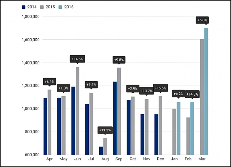 Az Európai Autógyártók Szövetségének (ACEA) pénteken nyilvánosságra hozott jelentése szerint az Európai Unió 28 tagállamában és az Európai Szabadkereskedelmi Társuláshoz tartozó négy országban (Izland, Liechtenstein, Norvégia és Svájc) 1 millió 744 ezer 986 darab új autót helyeztek forgalomba márciusban, ami 5,7 százalékkal haladja meg az egy évvel korábbi szintet. Az unióban 6 százalékkal valamivel több mint 1,7 millióra emelkedett az új autók száma. A forgalomba hozott új autók száma immár megközelítette a pénzügyi világválság előtti csúcseladások szintjét. Immár a 31. egymást követő hónapban bővült az európai autópiac, és a legtöbb autógyártó - a Nissan, a Hyundai és a Mitsubishi kivételével - több járművet értékesített az előző év márciusához képest.