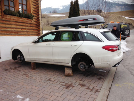Ismeretlen elkövetők ellen indított nyomozást az osztrák rendőrség. Fiss településen, Landeck járásban, egy család autójának mind a négy kerekét lelopták hajnali négy óra körül. Amikor a család reggeli után kirándulásra indult volna, döbbenten szemlélték, hogy C-osztályú Mercedesüknek egyetlen kereke sem maradt.