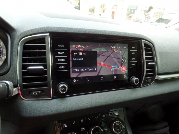 A Waze egy korábi verziója egy Skoda Karoq kijelzőjén